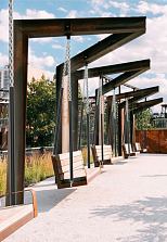 В прозрачных ящиках размещены примеры мусора. Табличка ниже сообщает время разложения мусора в земле.
